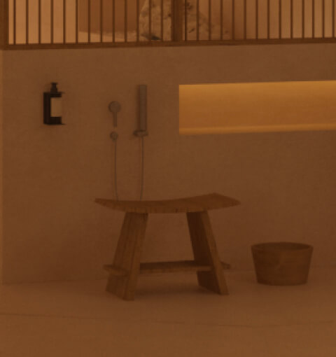 Antes de adentrarte en las aguas del onsen, este delicado ritual limpia tu cuerpo y tu mente con jabón y agua tibia. Es un instante de reflexión, donde el murmullo del agua te vuelve como un susurro de renovación y purifica tu piel.